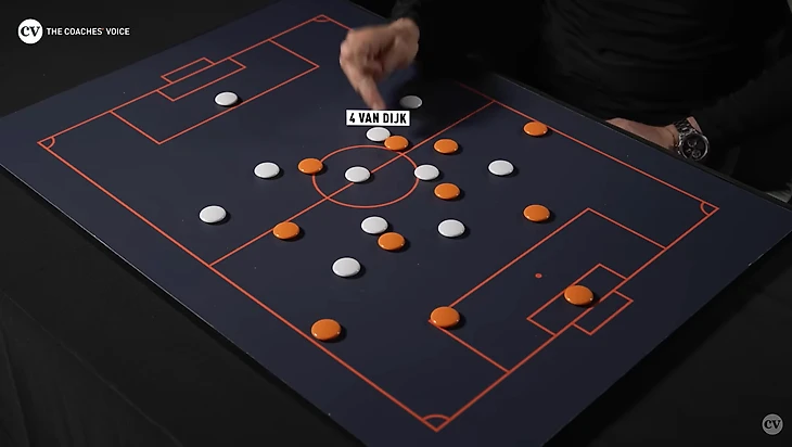 В остальных же случаях подобные перестроения могли стоить нам пропущенных мячей, поскольку наши игроки обороны играли в высоких позициях и были заточены на мгновенное продвижение сразу после перехода владения. Например, так был забит третий гол - после отбора ван Дейка и своевременного паса вперед.