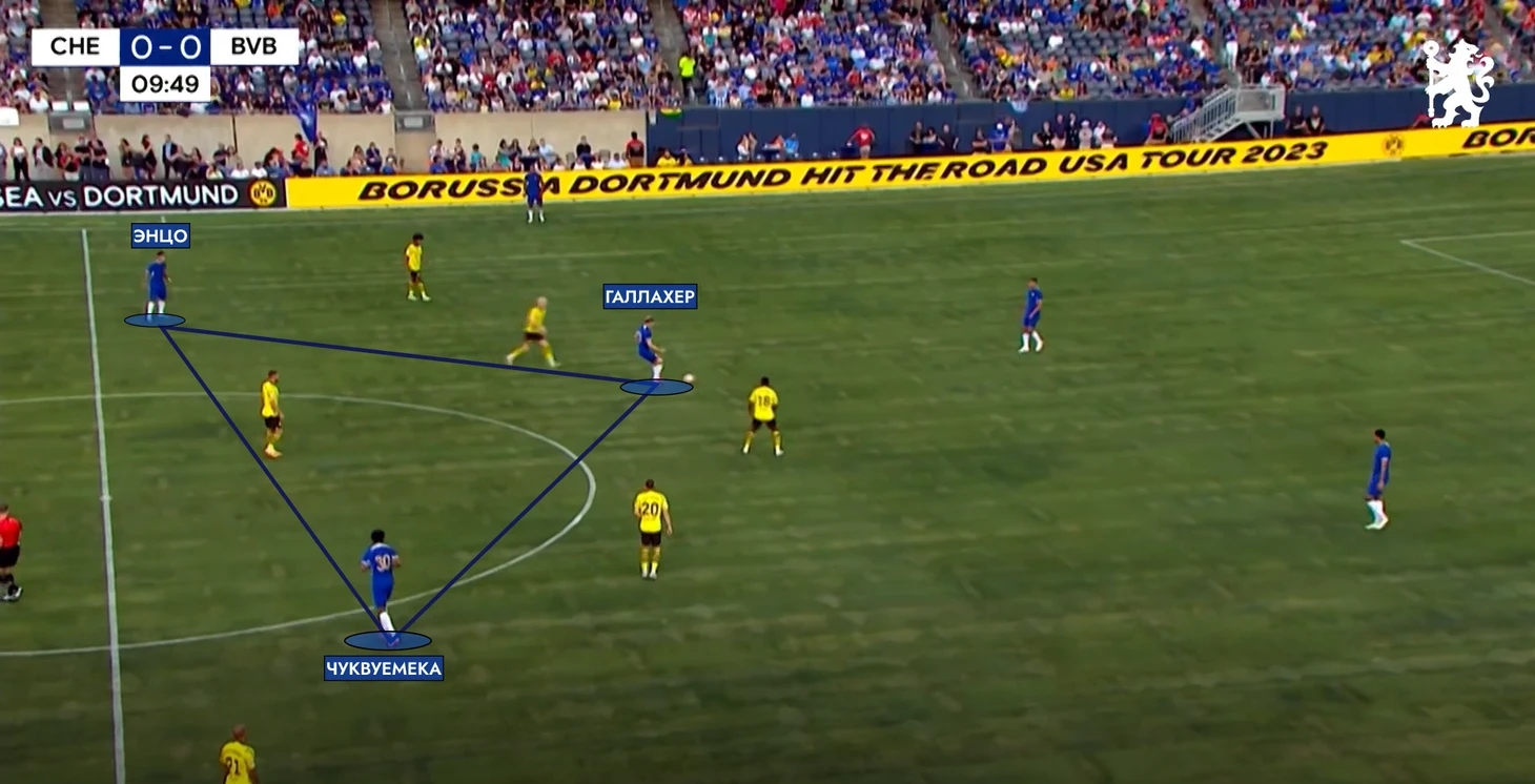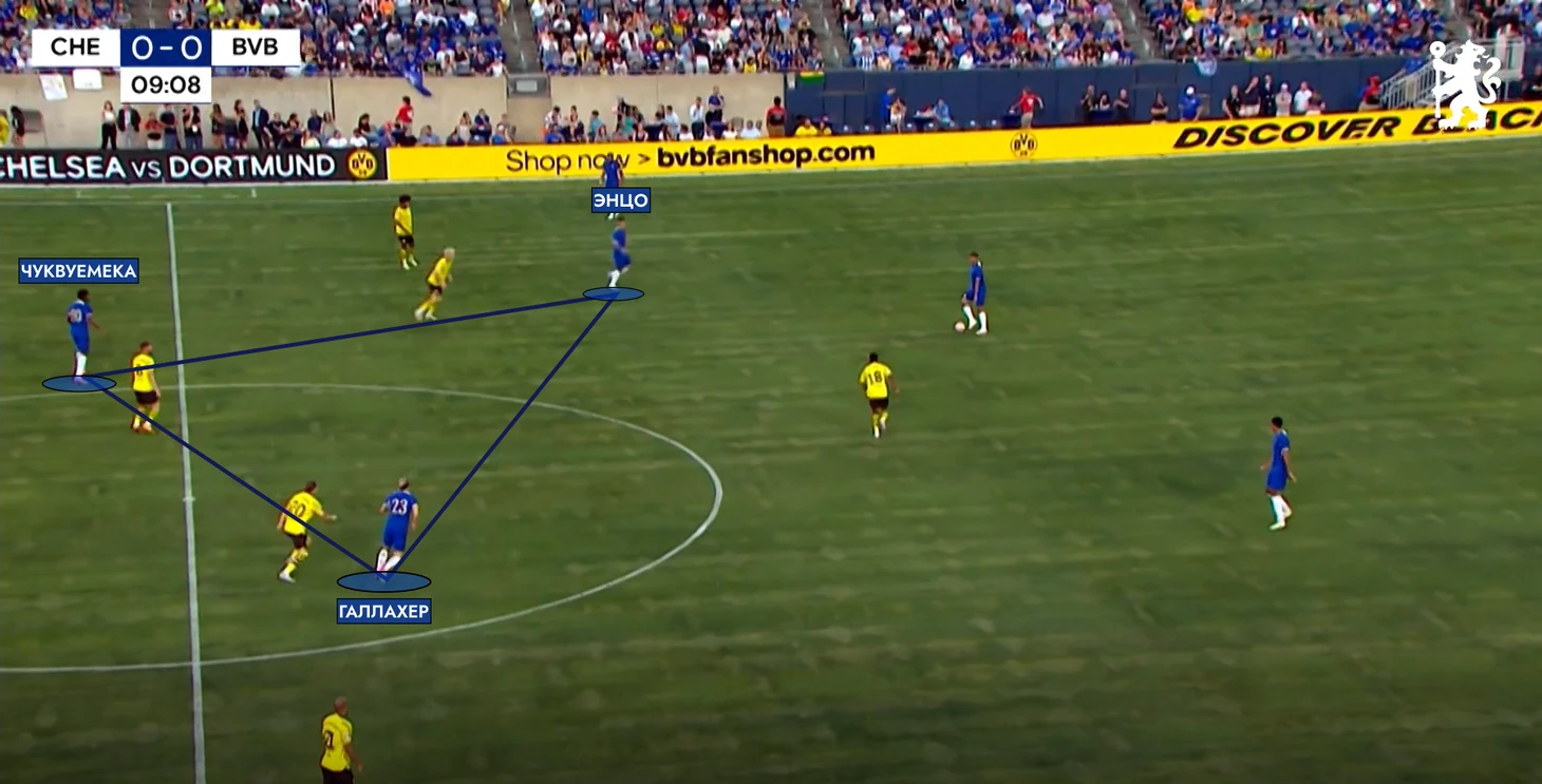 На предсезонных матчах Почеттино предложил интересный концепт в атаке – при владении мячом Бен Чилвелл занимал позицию вингера, а Нкунку переходил в пару к Джексону.
