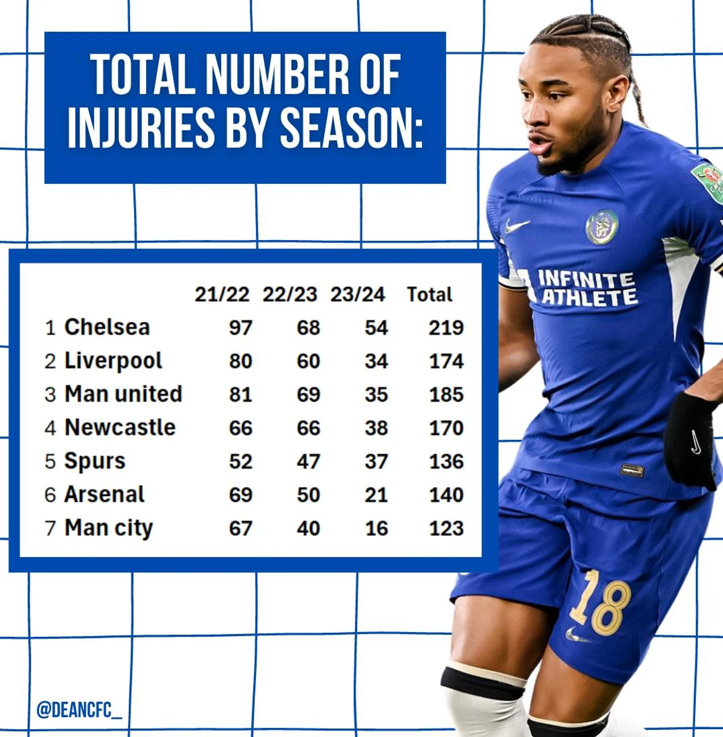 «Челси» больше всех пострадал в этом сезоне от травм. Всего их накопилось 54. Мы так и не смогли увидеть на поле Уэсли Фофана, немного поглядели за Лавией и Угочукву. Джеймс и Чилвелл не смогли выйти на приемлемый уровень, и потенциал влияния Нкунку на игру команды остается загадкой.