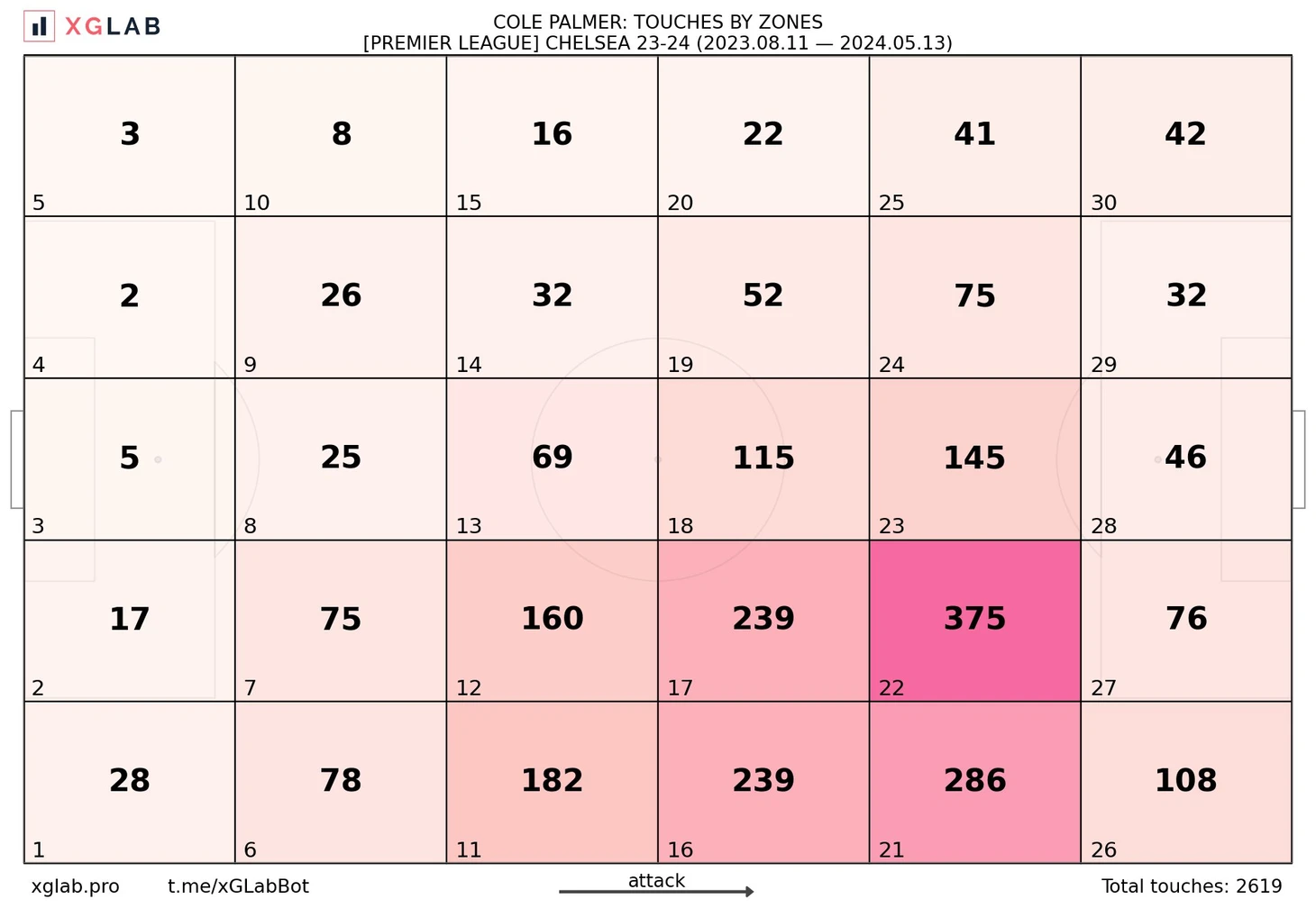 В защитной структуре Коул в большинстве матчей располагался на одной линии с Нико Джексоном – пару раз за сезон Палмер перехватывал передачи защитников и создавал быстрые атаки.