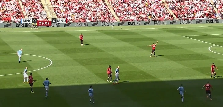 И если Кайлу Уокеру удавалось удерживать Рэшфорда, то справа Гвардиол страдал против Гарначо. Так и родился первый гол. Все началось с паса Далота.