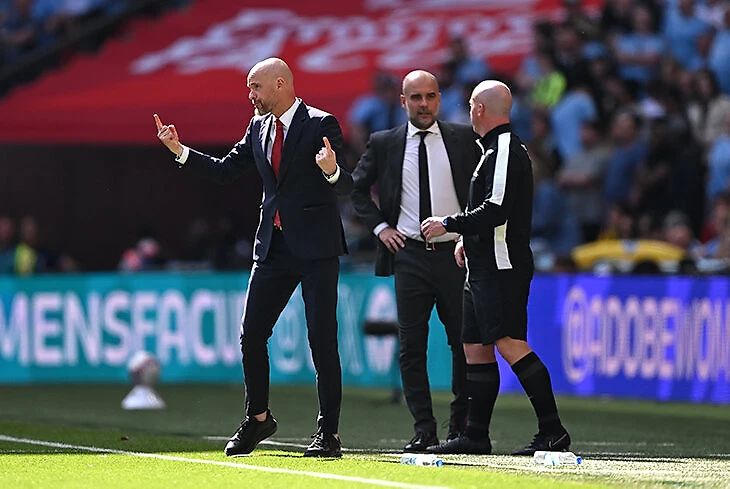 Тен Хаг занимал 3-е место, выиграл Кубок Лиги, победив финале Ньюкасл, занявший 4-е место в АПЛ, выиграл Кубок Англии, победив в финале Сити.