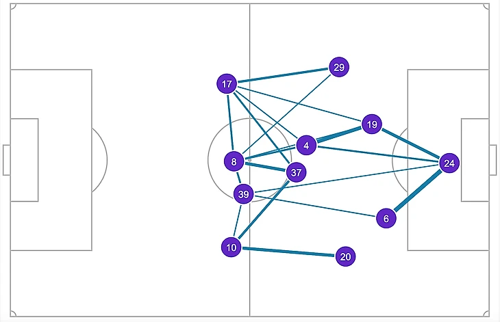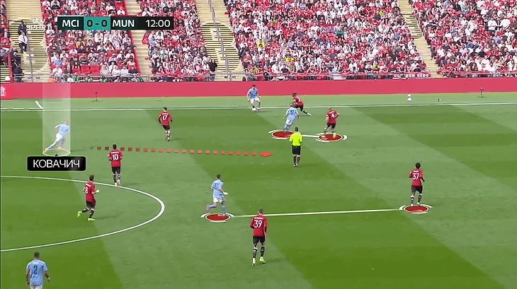 Зато по ходу первого тайма опасные рывки в свободную зону начали совершать Матео Ковачич и Родри. Особенно внезапными были подключения хорвата – раньше в таком замечен не был: