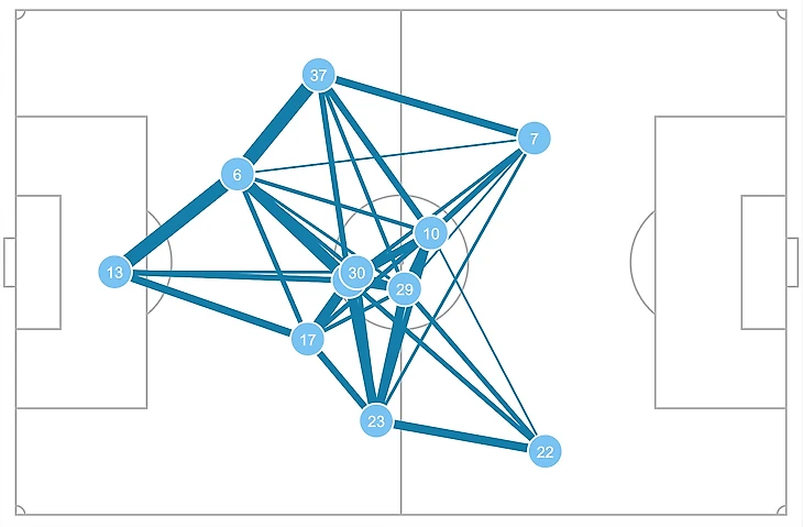 Карта передач хорошо отражает сходство. Вот модель «Тоттенхэма»: