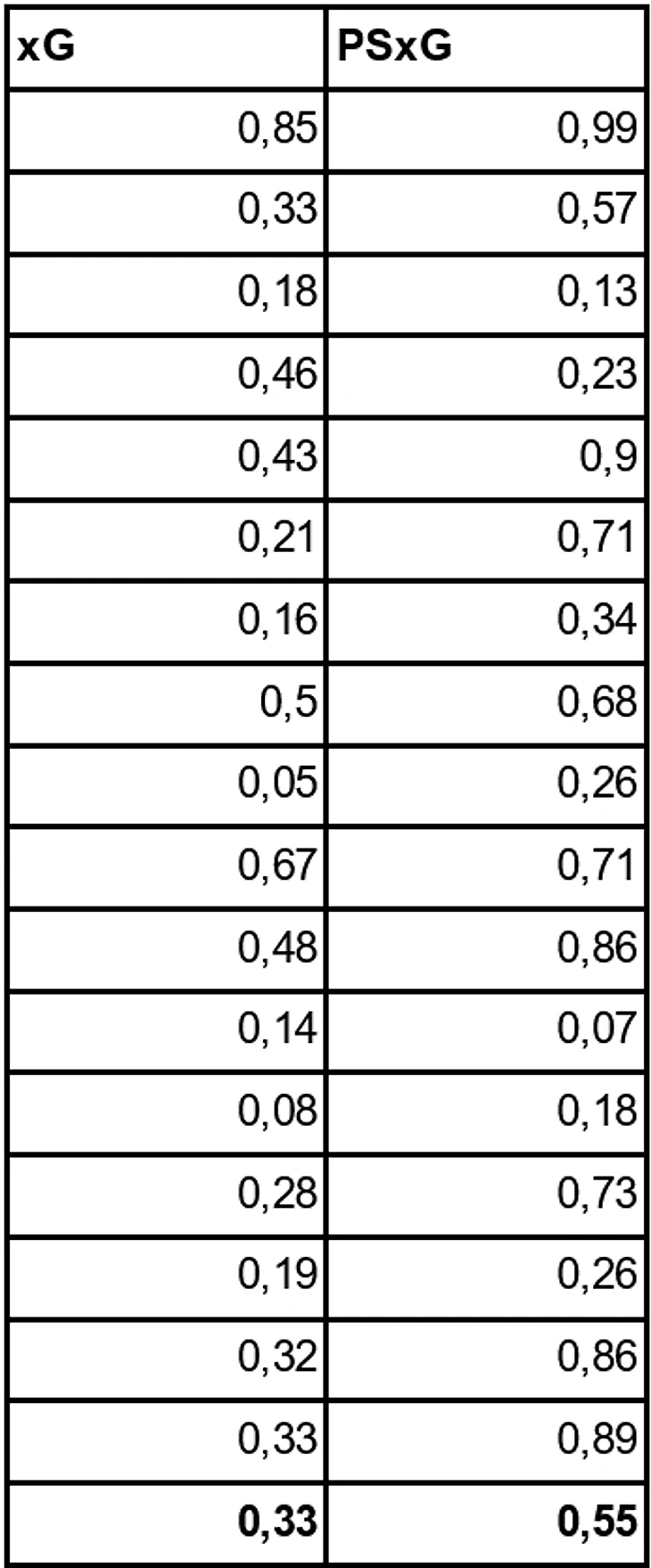 Какая грусть. Нельзя серьезно воспринимать PSxG/xG ~ 4, учитывая небольшую выборку, хоть значение и выглядит монструозным.