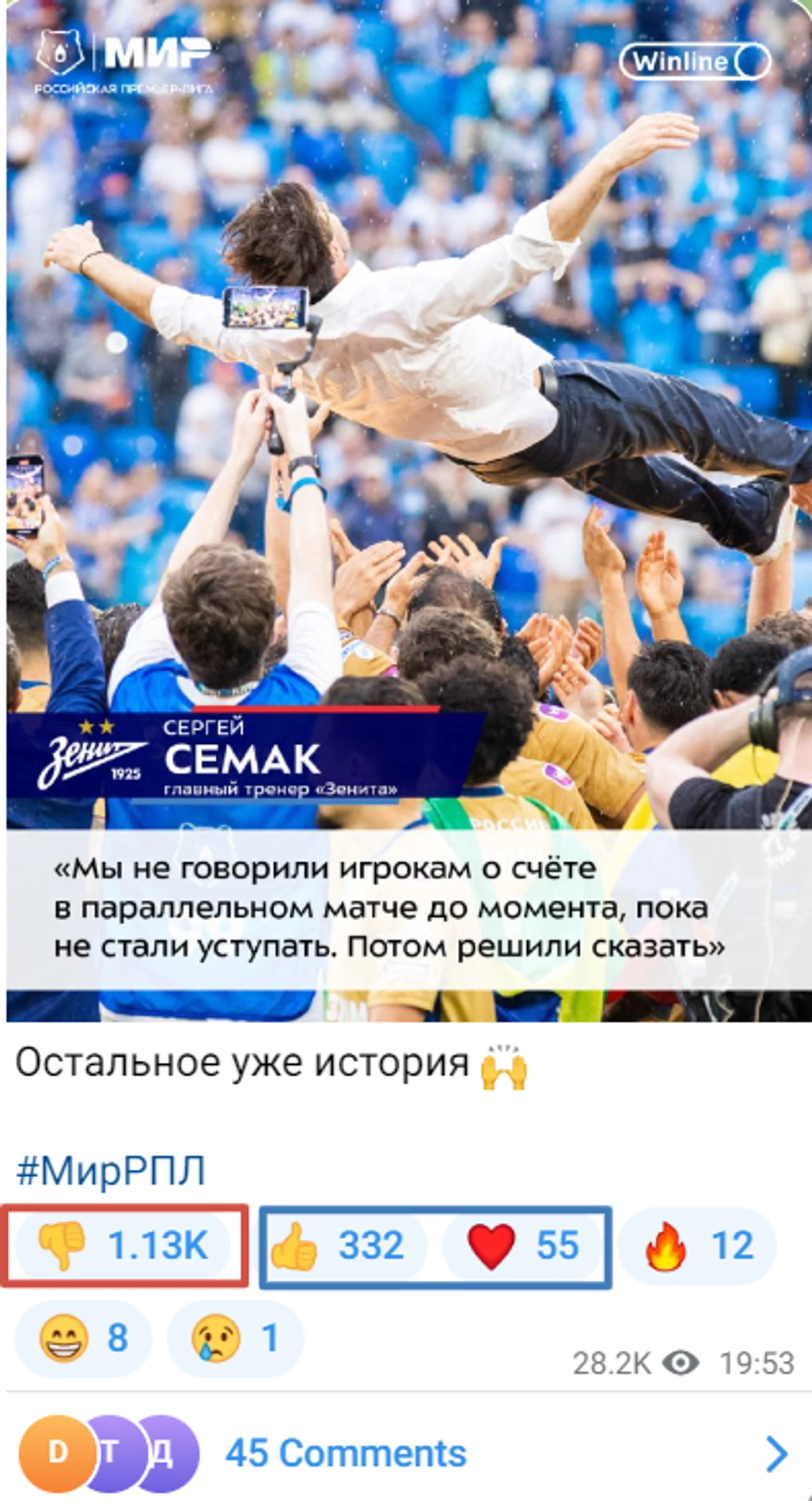 Ахах, о да. 1,5 тысячи дизлайков перевозбудившихся зрителей Борзыкина это конечно футбольная Россия. Ага.