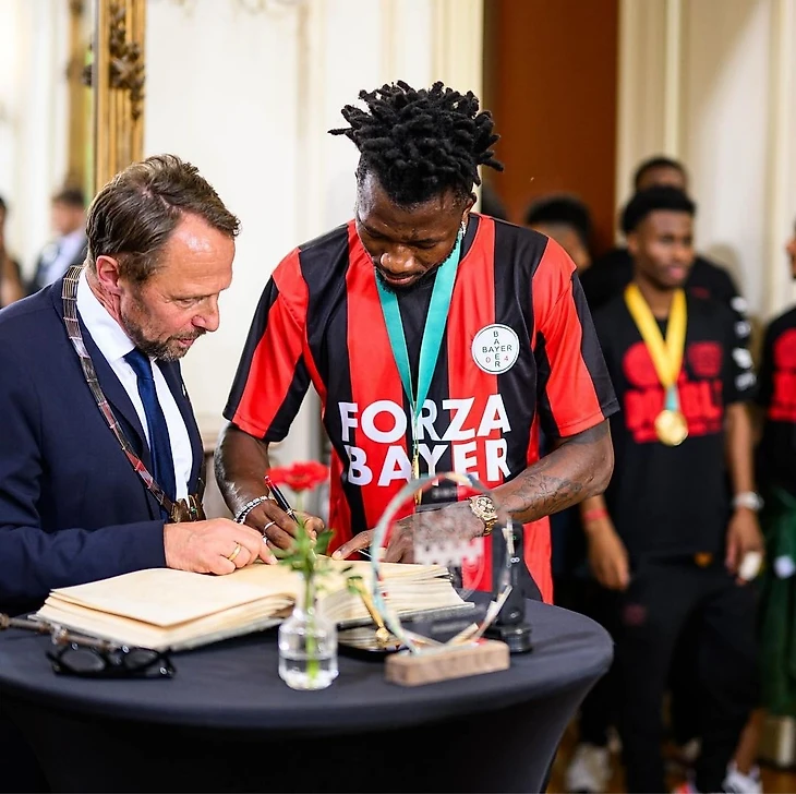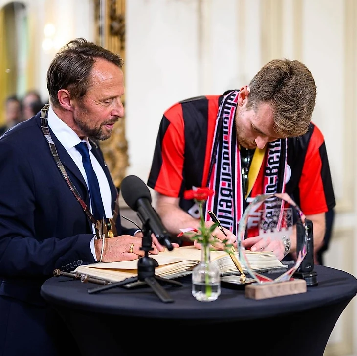 Затем команда заехала на в замок Морсбройх, чтобы подписать Золотую книгу города Леверкузена.