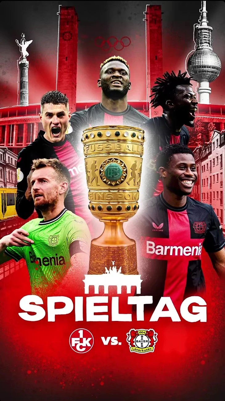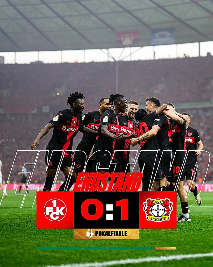 «Золотой дубль» и завершение исторического сезона! «Байер» победил «Кайзерслаутерн» со счетом 1:0 в финале Кубка Германии на Олимпийском стадионе в Берлине и стал его обладателем в сезоне 2023/24!