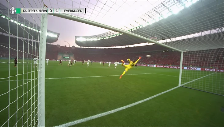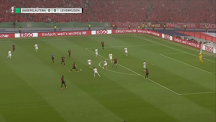 «Леверкузен» довольно быстро взял игру под свой контроль и сумел забить на 16-й минуте. Гранит Джака нанёс потрясающий удар в левый верхний угол ворот «Кайзерслаутерна» почти с 20 метров, не оставив Кралу никаких шансов совершить сейв.