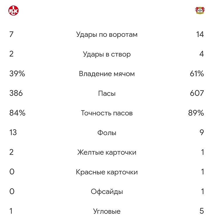 Последние минуты матча оставались напряженными, поскольку «Байер» боролся за то, чтобы «Кайзерслаутерн» не смог вернуться в игру, сравняв счёт. В итоге команда Хаби Алонсо выдержала давление соперника и дождалась финального свистка судьи.