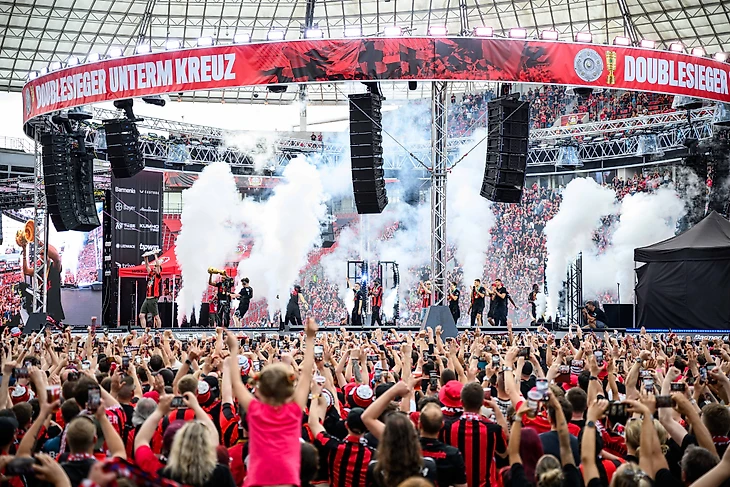 Из замка Морсбройх «Байер» направился на «Бай-Арену», где вместе со своими болельщиками «Байер» отпраздновал завершение сезона и «золотой дубль».