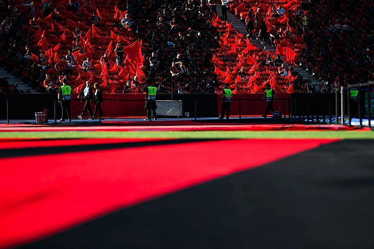 Болельщики обеих команд устроили на трибунах настоящий перфоманс. Посмотрите, как же это красиво! К слову, фанатам «Кайзерслаутерна» понадобилось 100 000 тыс. евро и 1 000 часов работы над этим произведением.