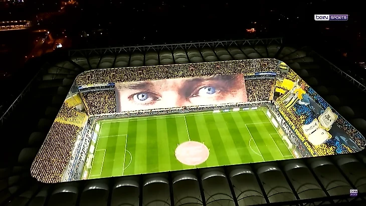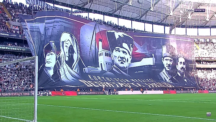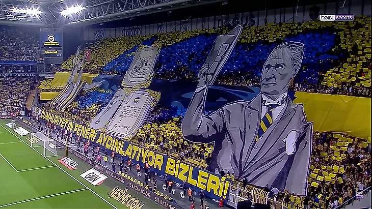 Взгляд Ататюрка коррелирует с синей (цвет клуба) темой изображения на трибуне за воротами.