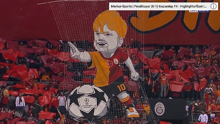 Очень забавным и милым выглядит баннер с Чиро Ромеро, сыном Дриса Мертенса, пинающим лигочемпионовский мяч. Ребенок – настоящая звезда в Турции. Бельгиец берёт его с собой на поле почти после каждого победного матча, и фанаты всегда в восторге.