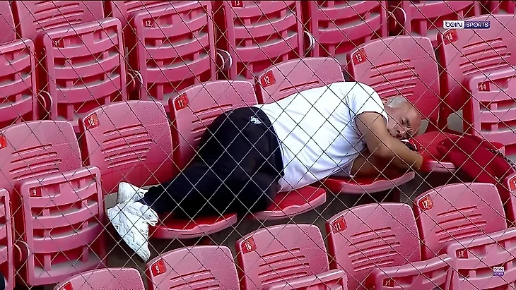 Этот мужчина на стадионе Самсуна – пример здорового пофигизма. Захотел спать на игре, лег, поспал. Никаких полумер в виде зеваний, потягиваний и прочих жестов. Надеемся, что ему приснилась победа «Самсунспора», которой в той игре клуб так и не добился.