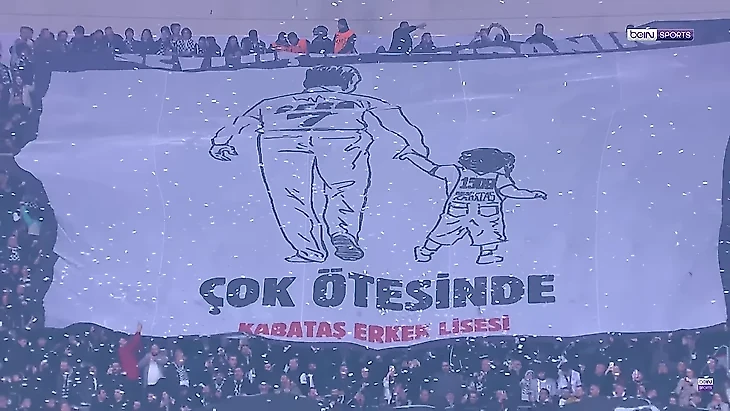Оба баннера, и с Оканом Буруком, и с мини-Мертенсом, обращены к силуэтам игроков «Фенербахче», изображенным в первые мгновения осознания своего вылета из Лиги Конференций от «Олимпиакоса» в серии пенальти. Маленький Чиро как бы насмехается над ними, а мудрый Окан читает лекцию: дескать, «знайте свое место».