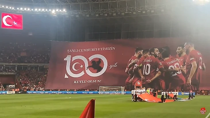 Перф был лаконичным, большим и приуроченным к 100-летнему юбилею Турецкой Республики, который в стране повсеместно отмечали спустя месяц после матча.