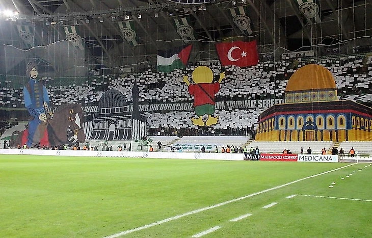 Этим обусловлен баннер на стадионе «Коньяспора» (кстати, Конья – один из самых консервативных городов страны; на прошедших в 2023 президентских выборах в иле Конья Реджеп Тайип Эрдоган набрал во втором туре 73% голосов при общетурецком результате в 52,18% голосов; также на прошедших недавно региональных и муниципальных выборах партия Эрдогана AKP набрала в Конье 49,44% голосов, в то время как общетурецкий результат составил рекордно низкие 35,49% процентов голосов, в связи с чем впервые за долгие годы относительное большинство голосов получила главная оппозиционная партия страны CHP).