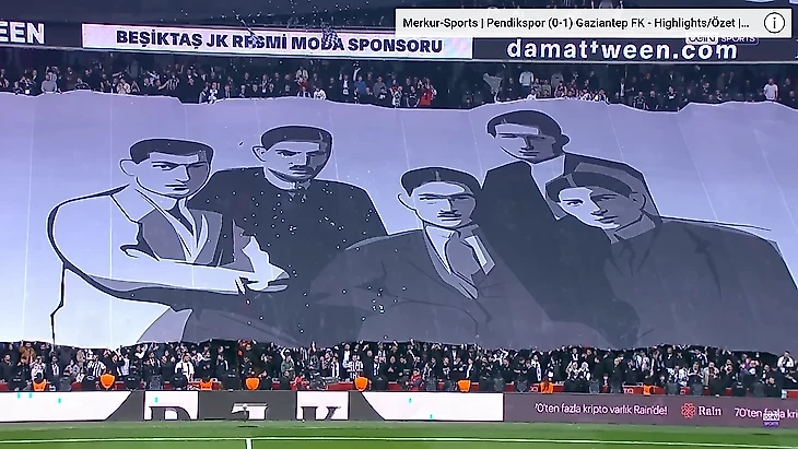 На центральной трибуне разместились отцы-основатели клуба (их имена также вышиты на спине юбилейной джерси «Бешикташа» к 100-летию республики: подробнее – тут), все варианты клубной эмблемы за более чем вековую историю и бесконечность в качестве временного пункта назначения истории.