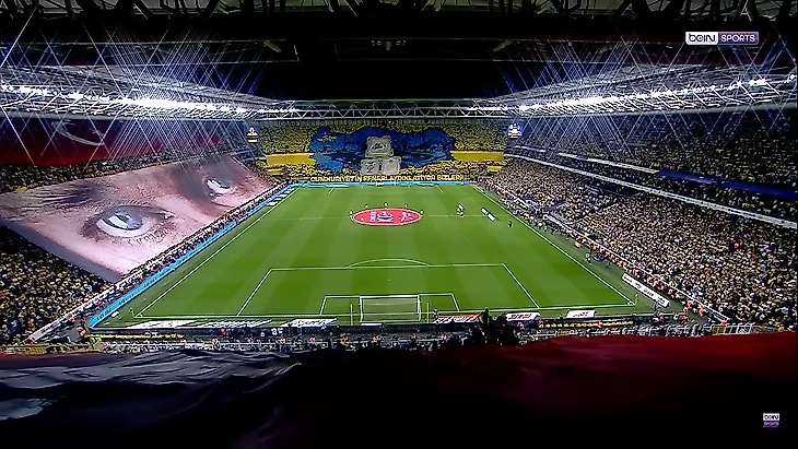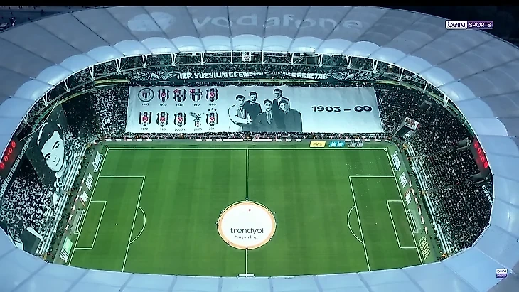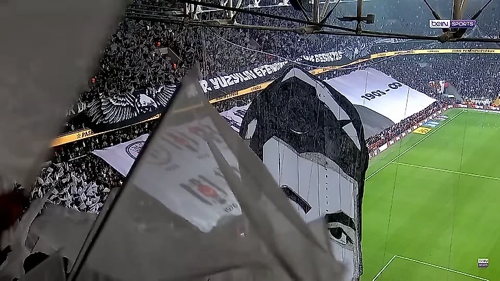 Во-вторых, в той игре центральная трибуна была заполнена исключительно болельщиками «Бешикташа», что видно по цветам (черный и белый) несмотря на равное распределение билетных квот между «Черными орлами» и «Трабзонспором».