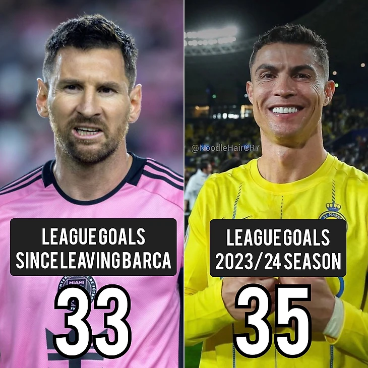 В то время как Роналду забил 35 голов за один сезон, Лео Месси после ухода из «Барселоны» забил всего 33 гола - 22 мяча в 58 матчах за «ПСЖ» и 11 в 16 играх за «Интер Майами».