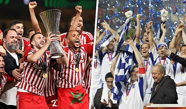 «Олимпиакос»-2024 стал первым греческим клубом с победой в еврокубке и символически отсалютовал сборной Греции-2004.