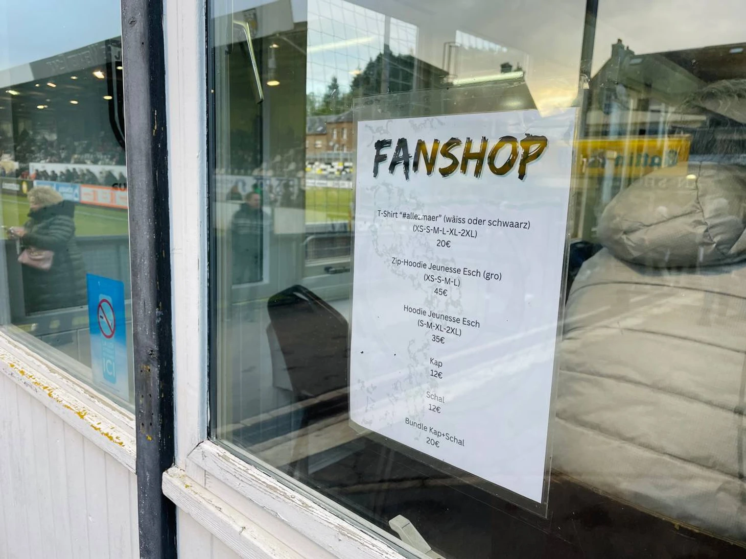 Фаншоп есть, но продают атрибутику в помещении напротив, которое оказалось закрыто. Но цены на мерч следующие: хлопковая футболка – 20€, худи на молнии – 45€, худи сплошное – 35€, кепка -12 €, шарф – 12€. Есть набор шарф + шапка за 20 €.