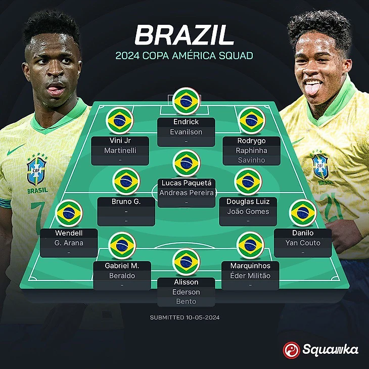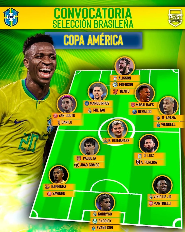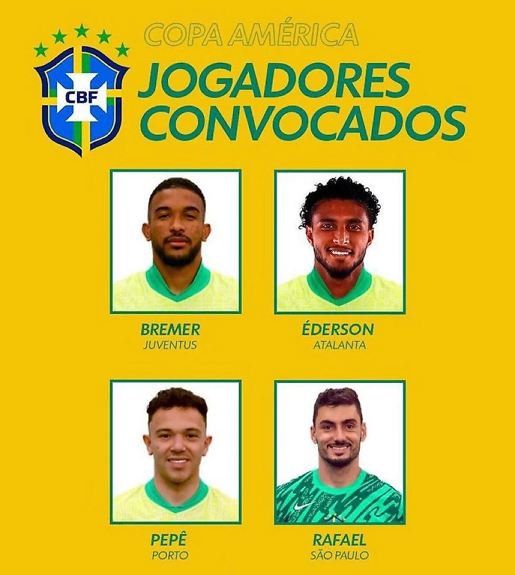 Изначально были названы 23 игрока. Ждали - разрешит или нет Конмебол увеличить заявку на турнир. Решили увеличить, и Доривал довызвал троих «плановых» и одного внепланового игрока - голкипер Эдерсон получил травму и его заменил 35-летний Рафаэл из «Сан-Паулу».