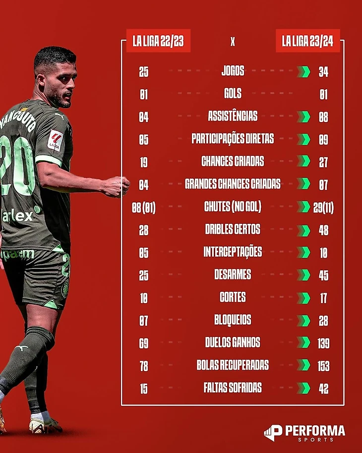Вообще прогресс Коуто впечатляет. он лучший среди крайних защитников ассистент Ла Лиги, заработал для своей команд больше всех пенальти, на третьем месте по обводкам и ударам по воротам, четвертый по заработанным фолам.