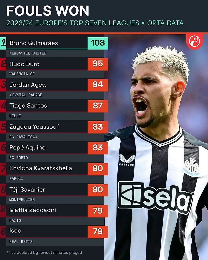 Статистические данные это подтверждают. На нем чаще всех фолят. Данные по всем игрокам из топ-7 лиг.