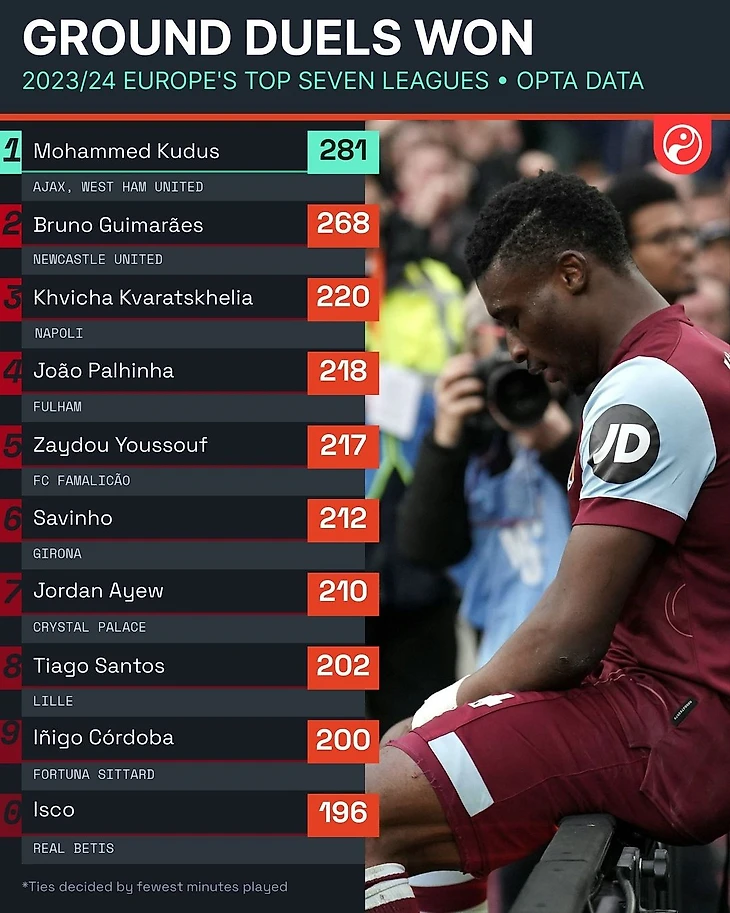 В своей же команде обращу на эволюцию оборонительной части-первый по блокированным прострелам, третий по количеству единоборств и пятый по отборам.