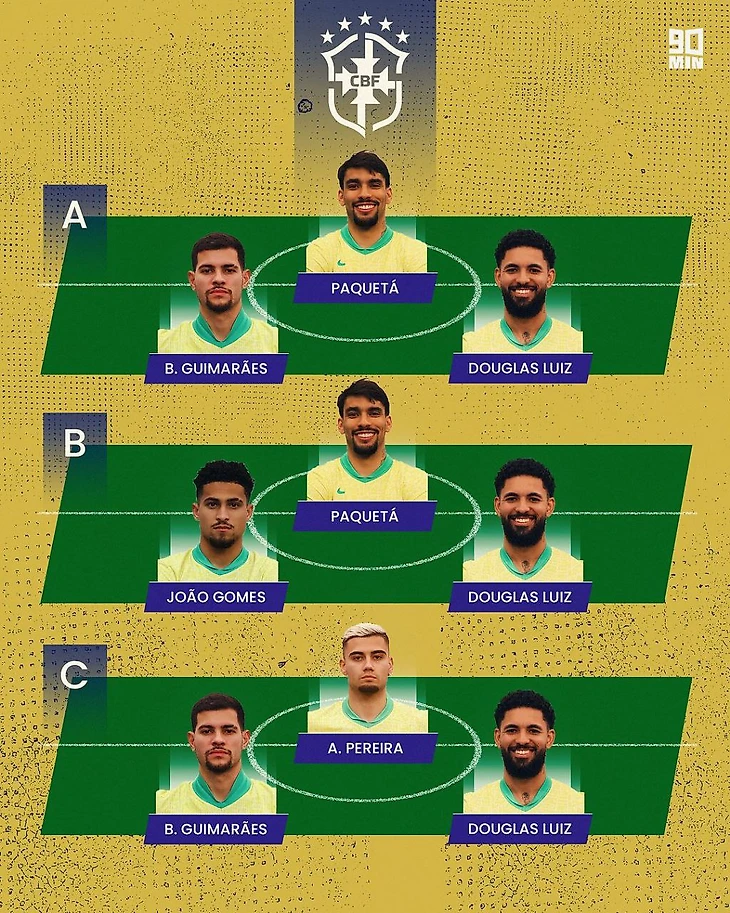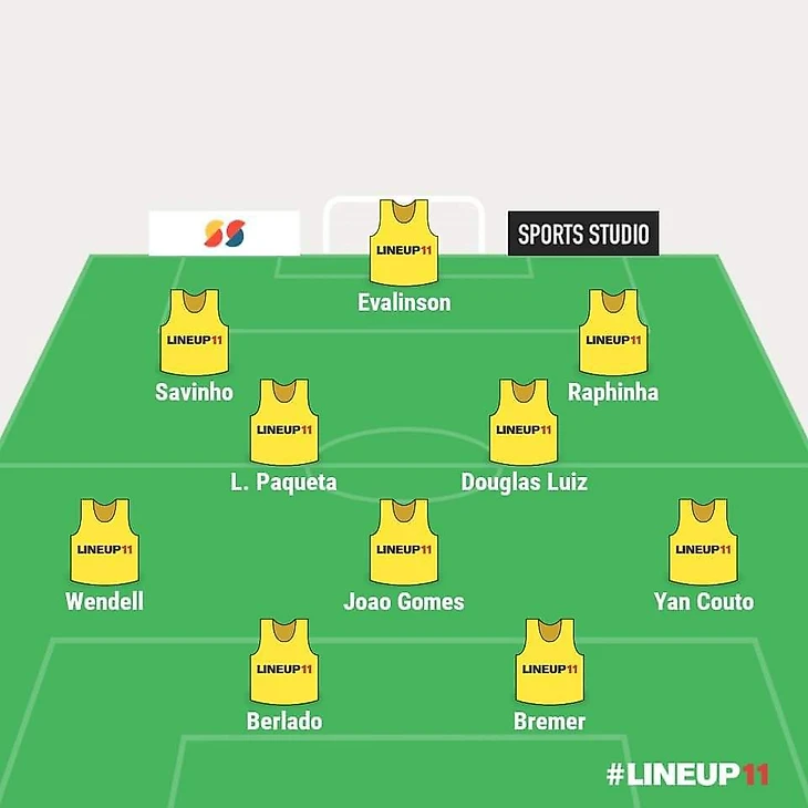 3. Ян Коуто, Бералдо, Бремер и Данило; Дуглас Луиз, Жоао Гомес и Лукас Пакета; Рафинья, Савиньо и Эванилсон