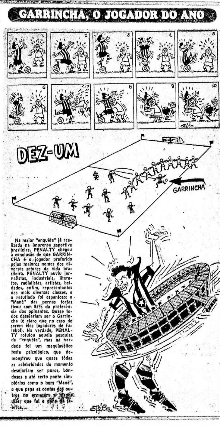 Не знаю, достигнет ли Савио уровня хотя бы Винисиуса (который, кстати, дошел до кондиции в 21 год, а значит у Савио есть еще пара лет). Но стать первым самим собой Савиньо ли или Савио Вторым бразилец точно сможет. Уже сегодня Савио показывает любовь к дальним ударам, отличный контроль мяча, силу левой ноги (хорошо бы развить и правую), грамотный футбол и жгучее желание развиваться. Как однажды написал мне один знакомый из Бразилии - посмотри за этим парнем, над ним виден нимб Манэ. Я тогда пропустил мимо ушей такой комплимент пацану, но сейчас его стремительное развитие через желание сделать все обязательно красиво, воскресило в памяти эту характеристику. Дай бог чтобы однажды в европейской прессе возникли вот такие вот коллажи о Савио как когда-то о Гарринче. Журнал O Globo, конец 1958. Манэ крутит обруч из футбольного стадиона, а тренер соперника выбирает как ему кажется единственно верную тактику сдерживания великого Хромого.