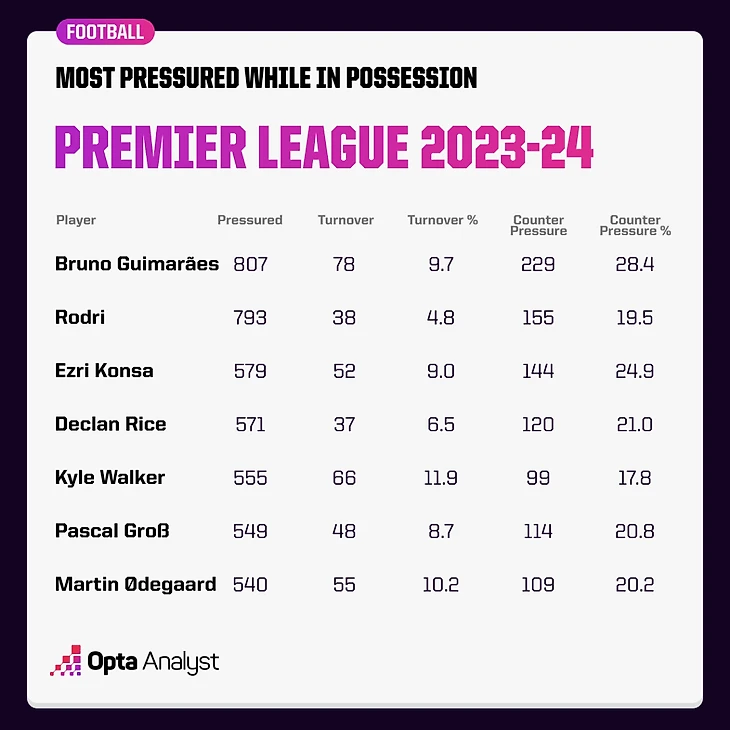 Что ещё мне сказать о главном мозговом центре и по совместительству «аферисте» сборной Лукасе Пакета? Он крут - объем работы как у Каземиро, по упомянутым ранее разрезающим передачам он чуточку уступил Одегорду. И недалеко старый друг Гимараэс. Данные по топ-7 лигам.