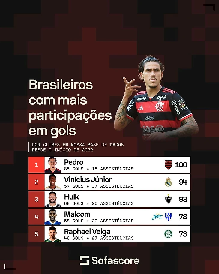 Форвард «Фла» вышел на хорошую траекторию-с начала 2022 он набрал уже 100 голевых действий, больше любого соотечественника за этот период