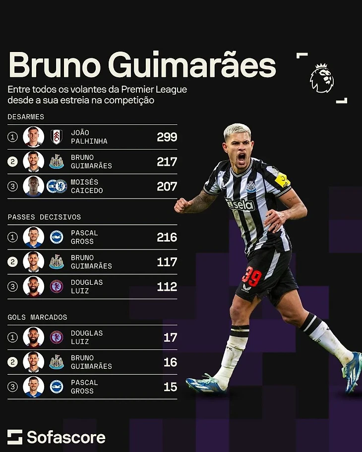 В первую очередь один из лучших полузащитников АПЛ Бруно Гимараэс. Заматерел. Уже перерос «Ньюкасл». Появились слухи об интересе Сити. Почему нет? Статистика говорит о значительном прогрессе и возросшей универсальности.