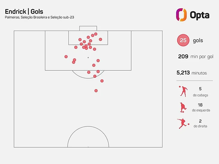 Из 25 голов 18 забиты левой ногой, 2 правой и еще 5 головой