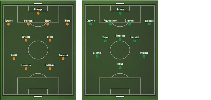 Гончаренко сделал ход конём - ну или, как Чапаев, картофаном, если угодно - и выставил двух белорусов в основе. Бочерова и Концевого. Пришли они после зимнего перерыва. У каждого по 4 игры, причём только Бочеров выходил в основе - дважды. Видимо, очень хорошо пришли, сильно помогли на даче или ещё где, нам об этом не говорили. Теперь они вдруг вышли в основе и это в то время, как молодые интересные атакующие футболисты Ишков и Дмитриев, наконец, стали стабильно выходить в основном составе. Выходили, радовали болельщиков и были редкими игроками в «Урале», кто создавал остроту в атаке. Они двое и Бегич.