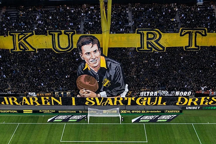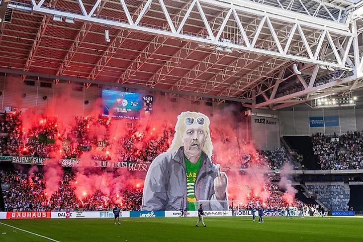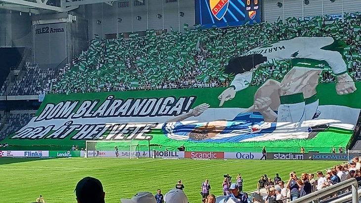 Напоследок вернёмся в Швецию, где в воскресенье состоялось столичное дерби «Юргорден»—«Хаммарбю». «Юргорден» перед этой встречей одержал 6 побед подряд и сел на хвост лидирующему «Мальмё», тогда как «Хаммарбю» выступал не так ровно, но тоже располагался вплотную к первой тройке. Примечательно, что стадион «Теле2 Арена» является домашним для обеих команд, поэтому хозяйничал «Юргорден» в этой игре лишь номинально. Но, тем не менее, предлагаю с них и начать, тем более они подготовили к этой игре крутой перфоманс «Мы играем с мячом стильно и классно – играем в стенку, пятками и короткими передачами. Боевой дух и элегантность – «железные печи» приглашают вас на танец!». Эти слова встречаются в фанатской песне «Мы – крутые!», а «Железные печи» — это прозвище клуба «Юргорден», а также название его крупнейшего официального фан-клуба болельщиков.