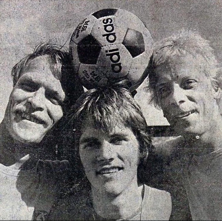 Ну а нарисовано на баннере было великая тройка нападения «Юргордена» второй половины 70-х и начала 80-х: Томми Берггрен, Лассе Стенбек и Андерс Грёнхаген. Поражает тот факт, что эта троица в период совместных выступлений не выиграла с клубом вообще ничего! Но, тем не менее, каждого из них обожает и почитает любой болельщик «Юргордена», причём это касается даже Стенбека, который на закате своей карьеры 1 сезон отыграл в составе вражеского «Хаммарбю». Данный баннер был перерисован с реальной фотографии с тремя нашими героями в 1978 году.
