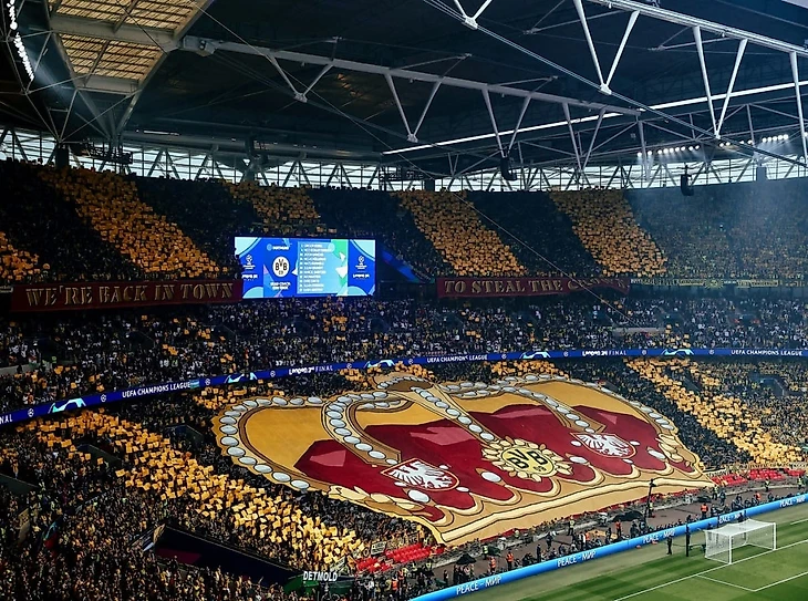 В 9 случаях из 10 финал главного клубного турнира планеты не попал бы в этот обзор, так как обычно в финалах Лиги Чемпионов чаще всего играют рафинированные в фанатском плане команды вроде «Манчестер Сити», «Ливерпуля» или мадридского «Реала». Но в этот раз соперником «сливочных» стала дортмундская «Боруссия», фанатский движ которой ещё пытается вдохнуть жизнь в довольно бездушный турнир, где на первый план выходят исключительно деньги — на поле решают многомиллионные звёзды, а главной задачей всех участников процесса является возможность заработать как можно больше денег. Ультрас Дортмунда зачастую показывали на домашних матчах отменное шоу и качественную поддержку, что позволило дойти их клубу до финала, при этом ни разу не проиграв в родных стенах. Более того, лишь «Милан» и «ПСЖ» смогли увезти из Германии ничейный счёт, при чём это было ещё на групповом этапе — в плей-офф немцы выиграли все 3 домашних встречи у «ПСВ», мадридского «Атлетико» и всё того же «Пари Сен-Жермен». Вот и в финале, где их соперником стал грозный «Реал», большим подспорьем должны были стать собственные болельщики, коих прибыло в английскую столицу более 25 тысяч человек. И бОльшая часть из них общим маршем прошла по улицам Лондона до стадиона «Уэмбли» — смотрелось очень впечатляюще!