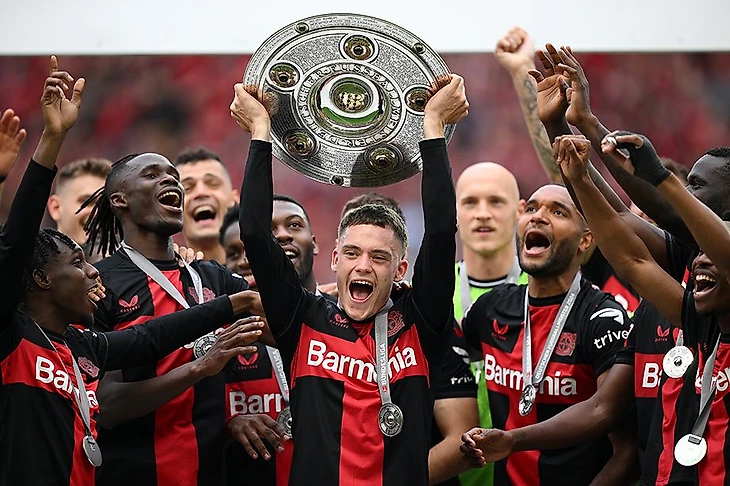 1. «Байер Леверкузен» (Германия) — когда мы рассказываем об этом клубе, мы не можем не упомянуть Хаби Алонсо, человека, сделавшего невозможное для немецкого клуба. Именно с ним команда впервые в своей истории завоевала трофей «Бундеслиги». Клуб за прошедший сезон побил много своих рекордов, и самый главный — это серия без поражений. Эта серия составляет 51 матч, эта цифра вошла не только в историю команды, но и всего европейского футбола. Команда не смогла взять «требл», проиграв в финале Лиги Европы «Аталанте» со счётом 3-0, поэтому довольствуется «золотым дублем». Кстати, к слову, в финале Кубка Германии «Байер» обыграл тоже мини-сенсацию этого сезона — «Кайзерслаутерн».