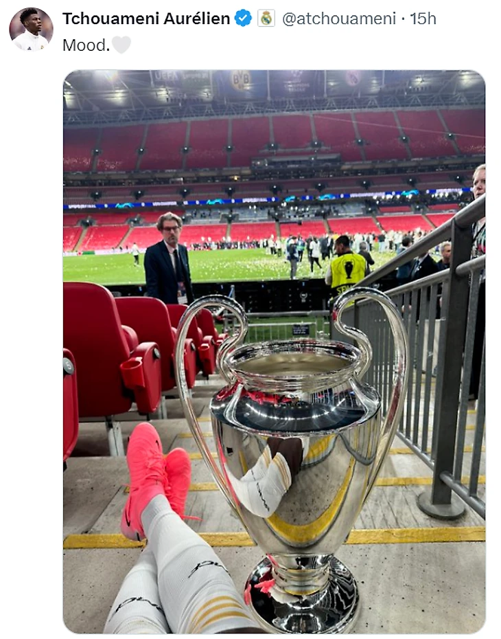 За пару недель до матча Орельен Тчуамени получил травму. Француз не успел восстановиться и наблюдал за победой своей команды со скамейки запасных. Но повреждение не помешало игроку отмечать завоевание трофея вместе с одноклубниками!