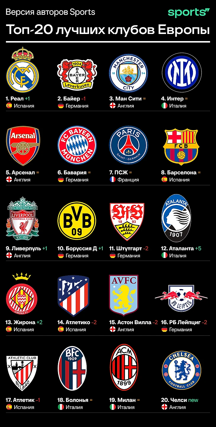 Итоговый топ-20 команд Европы. Вы знаете, кто лучший 🤨