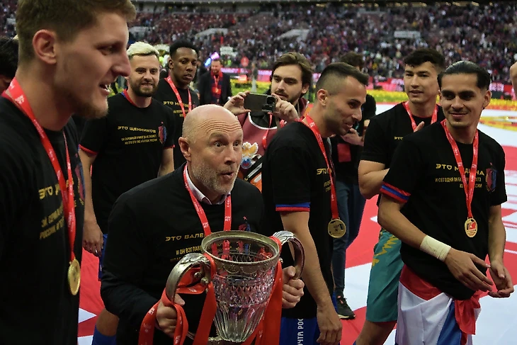 Но и это были цветочки. Уроженец Свердловской области принимает ЦСКА, снова берет серебряные медали, но главное, он поднимает Кубок России. Это уже ягодки триумф!