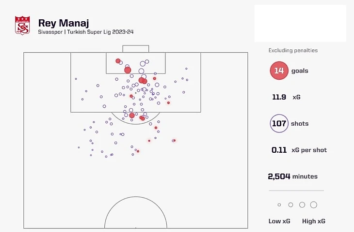 «Сивасспор» 37 ожидаемых голов за сезон благодаря ударам без пенальти, что является третьим самым низким показателем в Высшей лиге, уступая только «Коньяспору» (32,7) и «Истанбулспорт» (36,1), который вылетел из лиги. Несмотря на это, общий показатель Маная без учета пенальти составляет 11,9, что является четвертым показателем в лиге и составляет треть часть голов «Сивасспора». Если у «Сивасспора» была возможность забить голы, то эта возможность доставалась Маная.