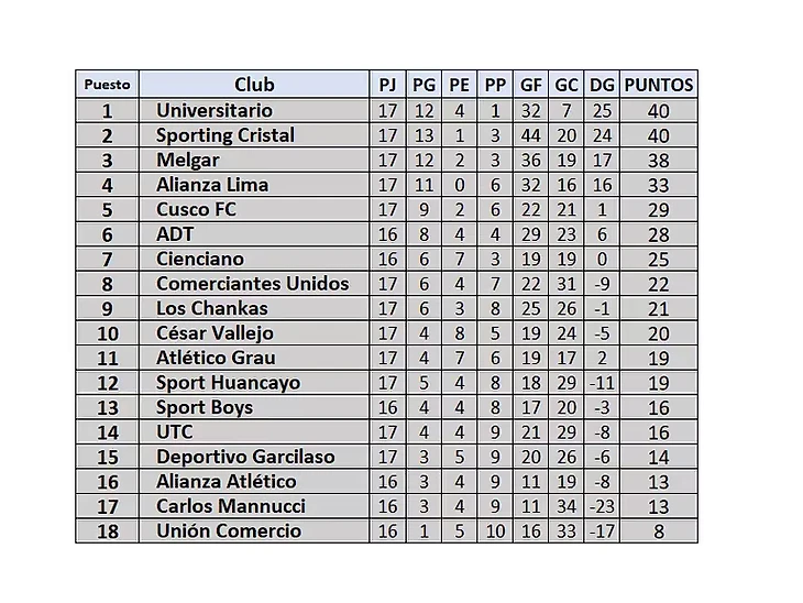 Завершилась Апертура или, проще говоря, первый круг Чемпионата Перу по футболу 2024 года. Как и в Чемпионате России, чемпионская интрига держалась до последнего тура. Правда, развязка в Перу получилась драматичнее.