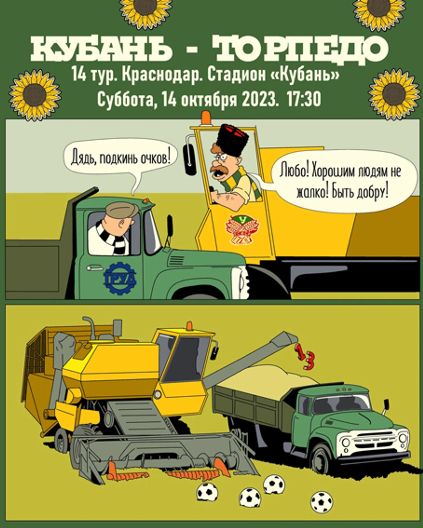 Идея картинок окончательно пришла к легкой фанатской тематике, так как близился 45-й день рождения фан-движения «Торпедо».