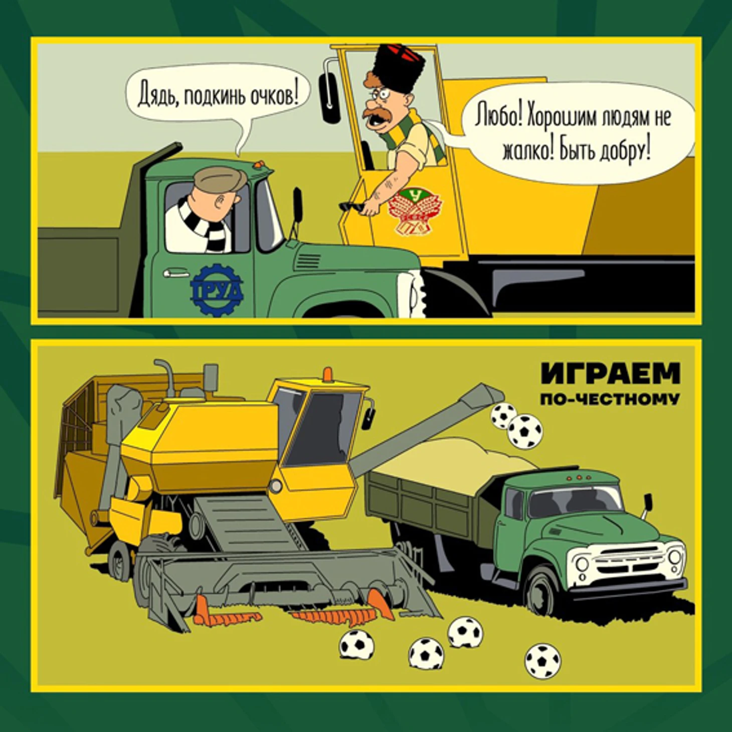 Стилизация под кадр мультфильма «Каникулы в Простоквашино». Катран – это талисман новороссийского клуба, который недавно прославился в финале Кубка России.