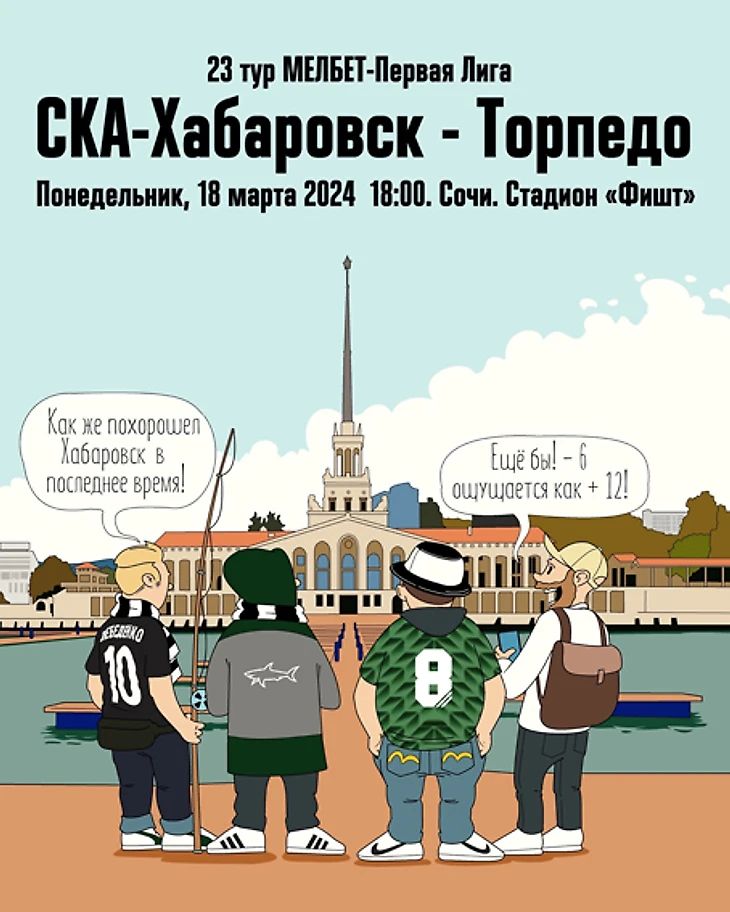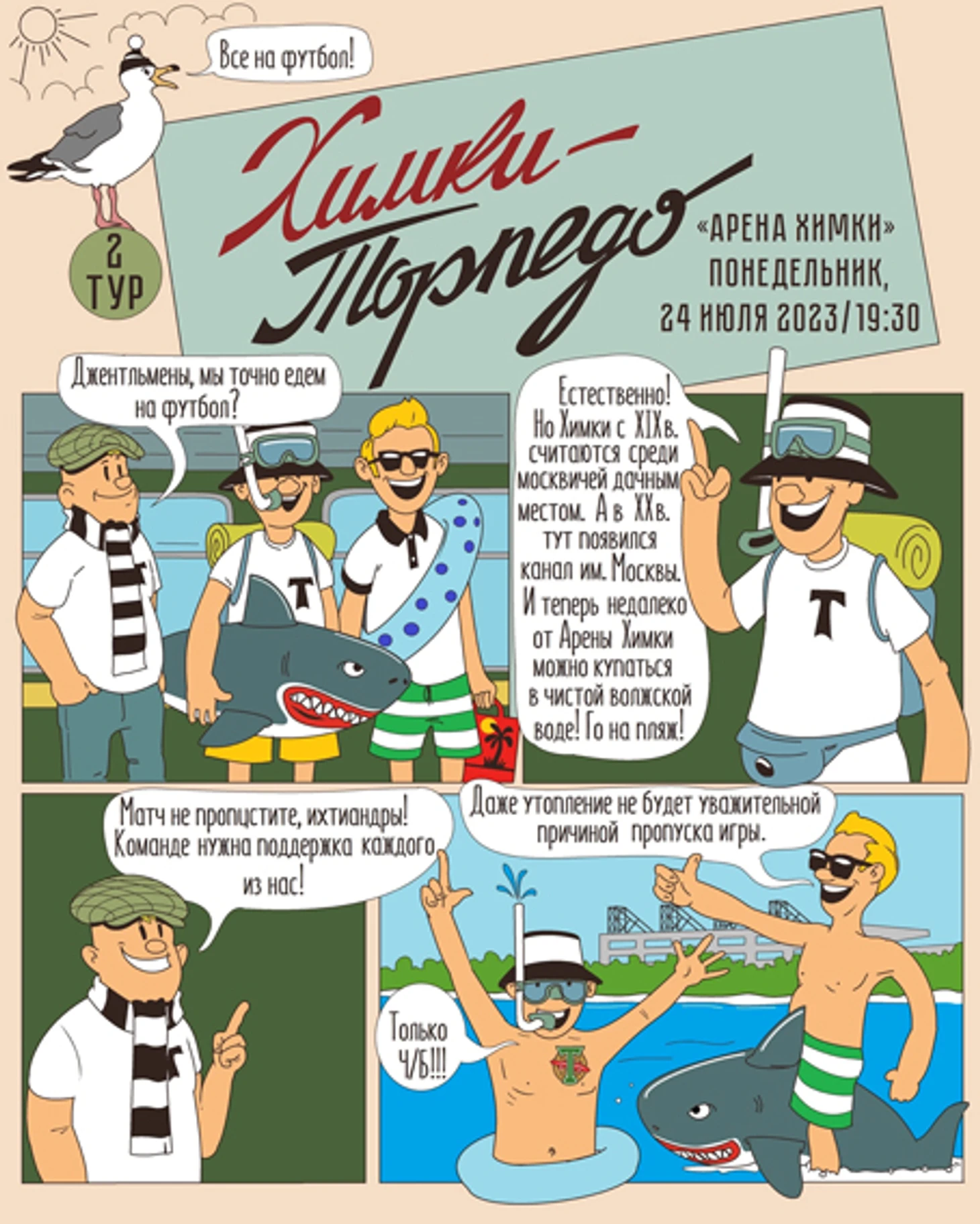 Напоминание о том, что в Химках можно купаться. А еще один болельщик «Торпедо» называет друзей ихтиандрами. «Бывайте, ихтиандры #####» – такими стикерами с фразой из фильма «ДМБ» фанаты «Локомотива» проводили черно-белых в первый дивизион в конце сезона-2022/23.